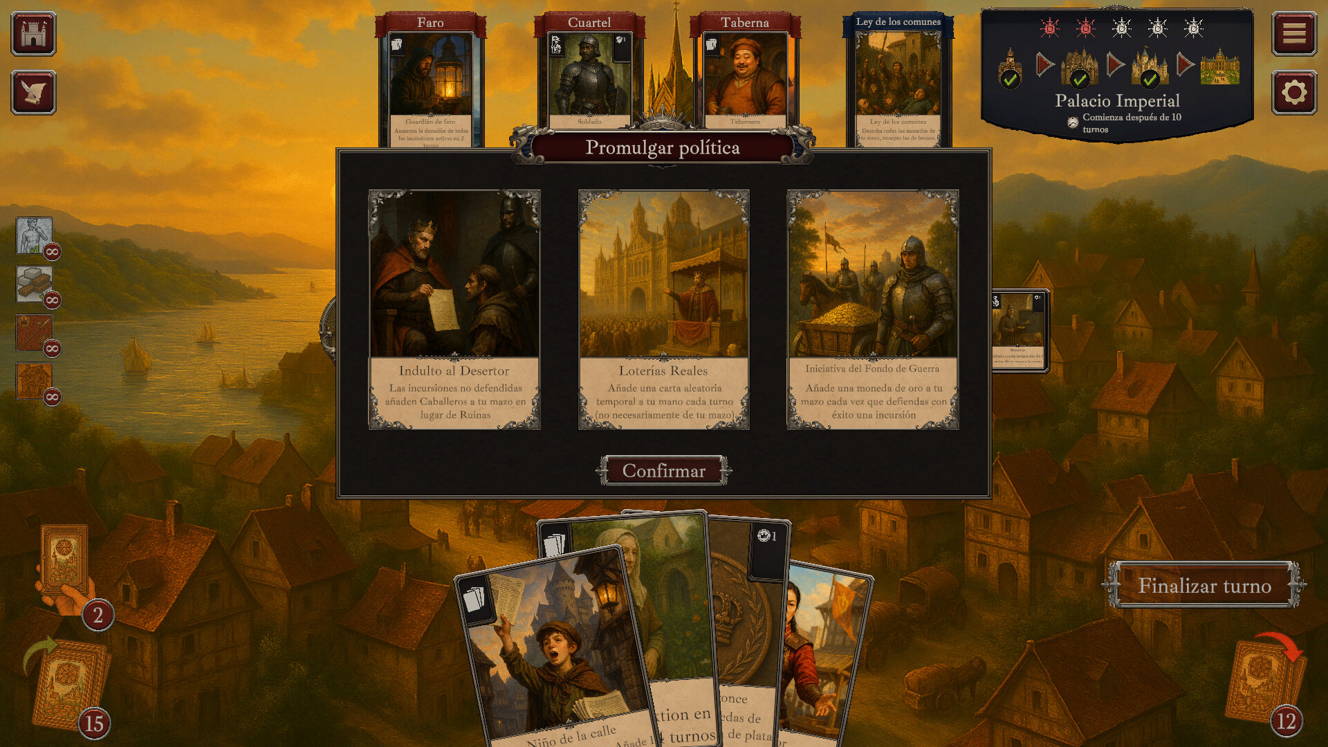 Una vez que superamos la barrera de entrada, el verdadero potencial de Caemdale comienza a brillar con luz propia. La jugabilidad es una danza constante entre la construcción y la supervivencia. El ciclo de juego se basa en turnos, donde cada mano de cartas debe ser optimizada para lograr nuestros objetivos a corto y largo plazo. La clave es la sinergia. No se trata solo de jugar la carta más poderosa, sino de entender cómo diferentes cartas y políticas de estado se complementan para crear combinaciones devastadoras.