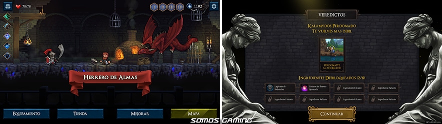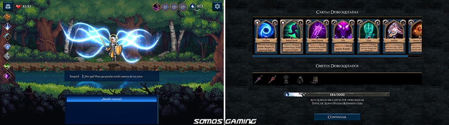 Cuando vencemos, o bien cuándo somos derrotados, se suman una serie de puntos, que nos van desbloqueando nuevas cartas y objetos, o incluso, como hemos dicho, el herrero de almas (dónde mejorar las cartas…), y esto hace que la siguiente partida incluya nuevas posibilidades estratégicas.