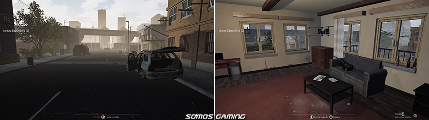 El sonido sigue por el mismo camino, aunque camina mejor. Tiene una música mezcla de techno y electrónica muy indicada para la atmósfera del juego y cómo se muestra el barrio. Luego tiene efectos sonoros muy simples pero bien implementados, cómo el ruido de las pisadas que varía según la superficie o la radio de la policía cuando está cerca. Eso sí, no hay voces, todos nuestros clientes hablan por texto y sin gesticular…