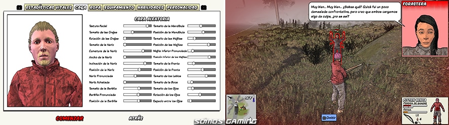 Antes de lanzarnos al yermo, el juego nos presenta un sistema de creación de personajes bastante competente. Podemos personalizar la apariencia, la vestimenta y el equipo inicial, pero lo más destacable es la selección de rasgos de personalidad. Estos rasgos no son un mero añadido cosmético; definen cómo nuestro personaje interactuará con el mundo y, lo que es más importante, cómo los demás supervivientes reaccionarán ante nosotros, siendo una pieza clave para el futuro de nuestra colonia. Todo esto afectará a la interacción con otros PNJ y hasta nos permite elegir un «kit» inicial. Del mismo modo, la generación del mundo es totalmente personalizable, pudiendo ajustar el tamaño del mapa, la estación del año, la hora de inicio y hasta el porcentaje de cada bioma, garantizando que no habrá dos partidas iguales.