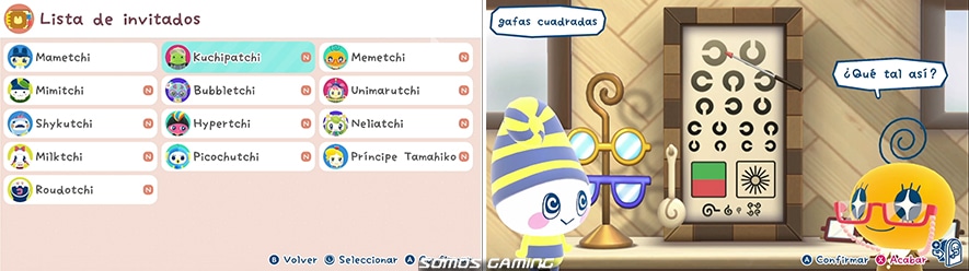 – Lista de Invitados: un registro de todos los tamagotchi que vienen a las diferentes tiendas de la plaza. Podremos ver un pequeño mensaje del personaje en cuestión así como diferentes fotos de sus outfits o lugares que les gustan. Cuanto mayor sea la reputación de la ciudad y según hagamos misiones secundarias con estos personajes, ampliaremos el registro de fotos de tamagotchis.
