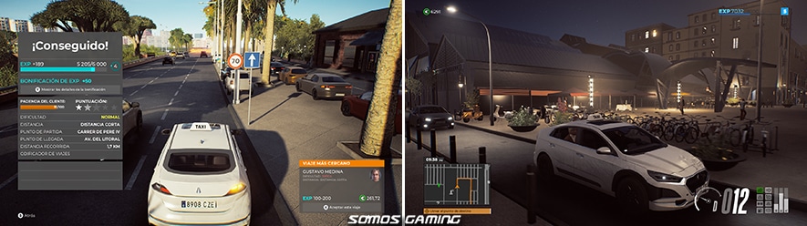 Empezamos desde abajo, con un coche normalito y lo justo para empezar a ganar dinero. Deberemos recoger clientes, para ello bastará con seleccionar uno del mapa o aceptar los encargos que nos lleguen al móvil. Esto es sencillo, se va a donde esté el cliente, se para, y este subirá al taxi y nos indicará el destino. Tranquilos si no conocéis Barcelona o si como un amigo mío os perdéis en la primera rotonda que cogéis, pues disponemos de un GPS que nos marca perfectamente la ruta. Benditos satélites…