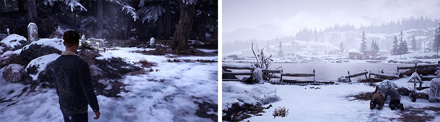 Una vez fuera del granero tendremos una visión donde debemos de seguirla (también habrá huellas) que nos mostrara por donde huyo la persona que intenta quemar la caja. Esto después nos llevará al embarcadero, después de seguir viendo las visiones habremos visto de nuevo al Loco Cazador, un ser cuanto menos inquietante y que aún no sabemos muy bien que hace.
