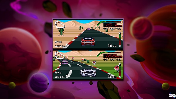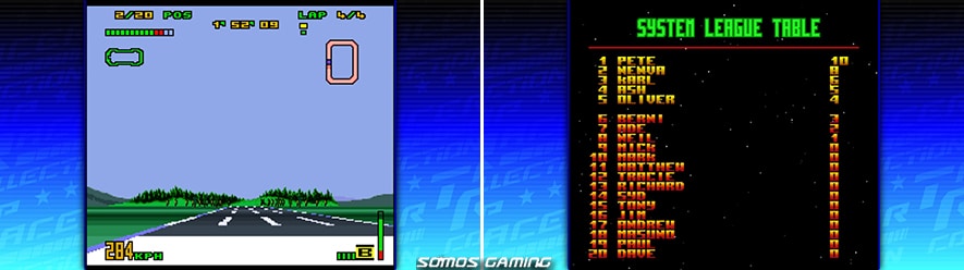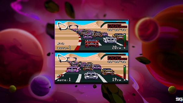 GRÁFICOS: Aunque los juegos están inspirados en la era de los 16 bits, eso no significa que carezcan de belleza visual, aparte del elemento nostálgico. Top Racer Collection presenta gráficos coloridos y detallados que hacen justicia a los clásicos originales. Desde paisajes pintorescos hasta efectos visuales impresionantes con gráficos pixelados la colección captura perfectamente la atmósfera de los juegos de carreras de los años 90. Y lo bueno es que si prefieres un aspecto retro con líneas de escaneo o una apariencia más moderna y nítida puedes hacerlo desde las preferencias.