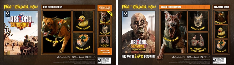 Arizona Sunshine 2 ya está disponible para su reserva anticipada desde hoy con ediciones estándar y Deluxe. Cada edición incluye objetos exclusivos para alimentar tu viaje al fin del mundo.