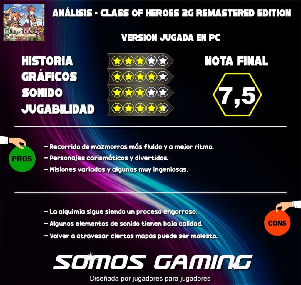 Class of Heroes 2G: Remastered Edition se presenta como una oportunidad para revivir la nostalgia de los RPGs clásicos de mazmorras, tal y cómo decíamos en la entrega primera remasterizada. Esta remasterización cuenta con gráficos en alta definición, compatibilidad con trofeos PlayStation 5 y PC.