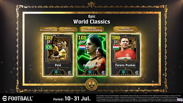 Pelé llega al juego como «Épico: Pelé», con un diseño conmemorativo del 30.º aniversario y convirtiéndose en el primer jugador de la serie en poseer dos nuevas habilidades únicas: Finalización Fenomenal y Pase Fenomenal. Se une a otros futbolistas legendarios como Johan Cruyff y Ferenc Puskás, ofreciendo a los usuarios la oportunidad de crear su Dream Team con algunos de los nombres más icónicos del deporte.