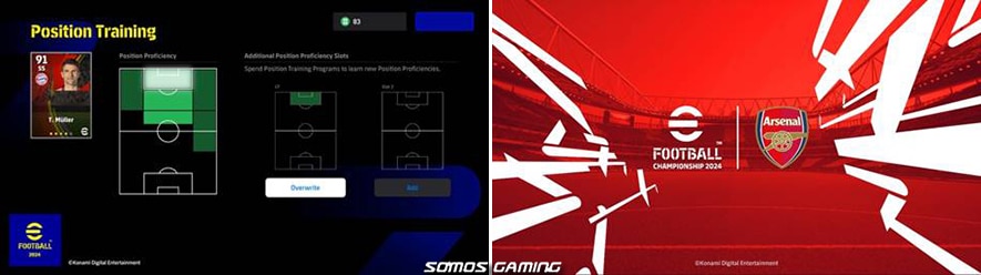 La nueva versión de eFootball™ también incluye una nueva característica de juego junto con otras mejoras diseñadas para responder a los principales comentarios de los usuarios y mejorar la experiencia del jugador. En el ‘Entrenamiento de posición’ los jugadores ahora podrán utilizar elementos exclusivos para entrenar hasta dos aptitudes posicionales por jugador. Esto les permitirá personalizar sus características y sus configuraciones tácticas.