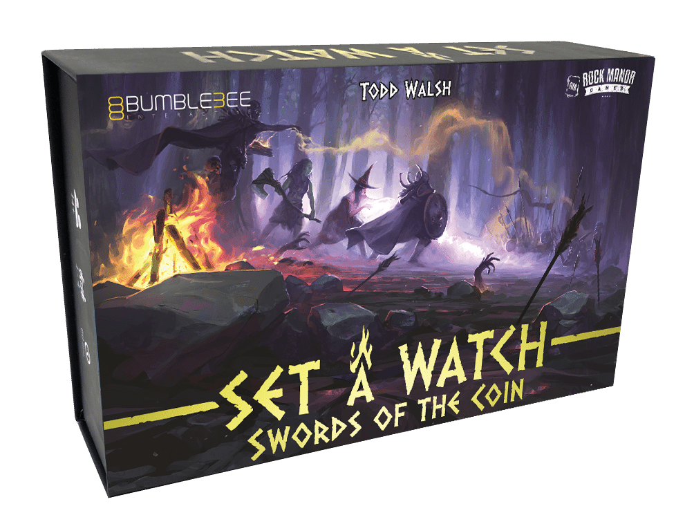 Swords of the Coin incluye nuevas ubicaciones, criaturas y al menos 4 nuevas clases de aventureros, cada una con sus propios dados, habilidades y mecánicas únicas. Todos los aventureros, criaturas y lugares del Set a Watch original son totalmente compatibles con esta nueva expansión independiente y se pueden mezclar y combinar para obtener más variedad al jugar a cualquiera de los juegos.