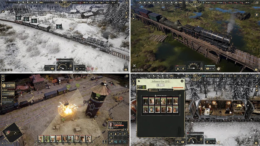 – GESTIONA A TU TRIPULACIÓN: Guía a tus soldados en su cometido a bordo del tren. Fabrica objetos, atiende a los heridos y levanta los ánimos en el tortuoso camino de vuelta a casa.
