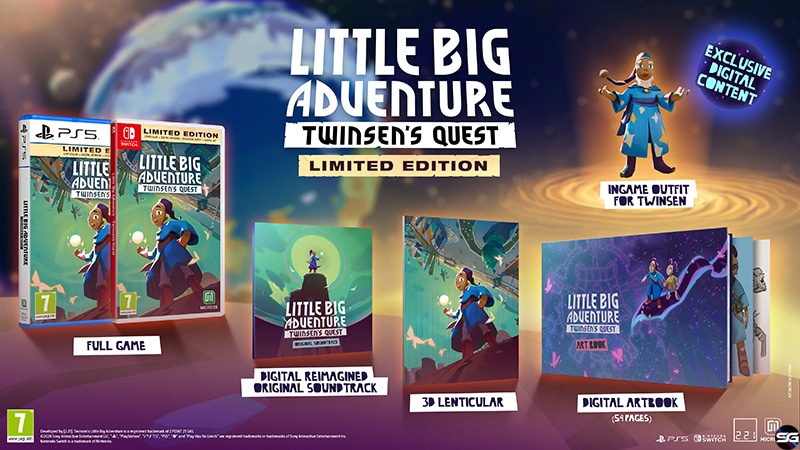 Little Big Adventure – Twinsen’s Quest estará disponible en otoño de 2024, el lanzamiento irá acompañado de una edición limitada en PlayStation 5 y Nintendo Switch, que incluirá el juego completo Little Big Adventure – Twinsen’s Quest, un traje exclusivo para Twinsen, la banda sonora en formato digital, un libro de arte digital y una impresión lenticular en 3D.