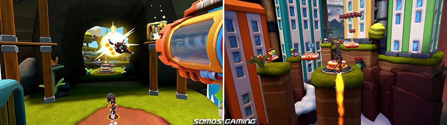 40 niveles diseñados a mano muestran una emocionante combinación de plataformas en tercera persona con potenciadores en primera persona.