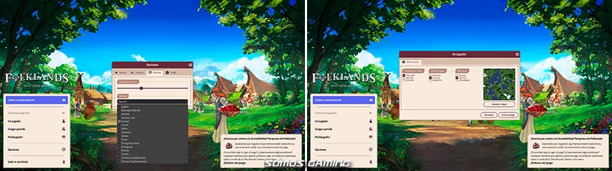 Al arrancar Folklands, nos recibe una interfaz limpia y funcional, sin grandes artificios, pero clara y directa. El menú principal nos invita a crear una nueva aventura con una serie de configuraciones que determinan el tipo de mapa, la abundancia de recursos y la geografía del entorno (tamaño, nivel de agua…). Esta primera interacción ya nos anticipa la naturaleza sandbox del juego, donde la exploración y la adaptación al entorno serán claves. No hay cinemáticas, ni música épica: la ambientación se construye desde la sobriedad.