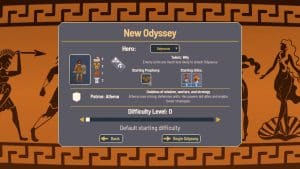 El juego ofrece un tutorial integrado en su narrativa: el jugador elige entre héroes como Aquiles o Odiseo, cada uno con habilidades únicas (como la furia de Aquiles o la astucia de Odiseo para evitar ataques). La dificultad es personalizable, con opciones que limitan recursos iniciales o aumentan la fuerza de los enemigos. Los primeros pasos incluyen gestionar un pequeño ejército, reclutar unidades como espartanos o arqueras míticas, y enfrentarse a crisis que otorgan mejoras permanentes (boons) o eventos narrativos. La mecánica de resurrección, que revive al héroe con un porcentaje de salud, añade tensión a cada decisión.
