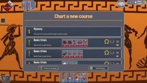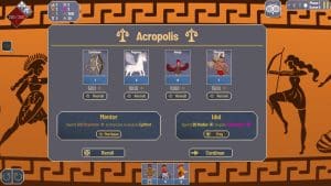 El camino de nuestro héroe se realiza eligiendo diferentes encuentros, donde además de combates o crisis de diferentes poderes, existe la posibilidad de rezar a los dioses, adquirir nuevas tropas y por otro lado conseguir recompensas. Las tropas que se pueden conseguir varían a lo largo de las diferentes fases del juego y así mismo su cantidad, y todas son referencias mitológicas reconocibles.
