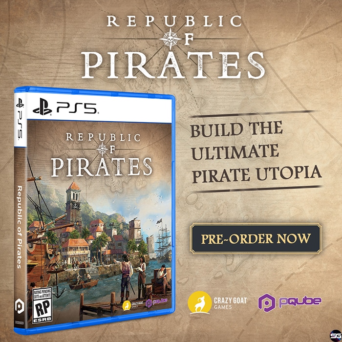 Republic of Pirates llegará en formato físico para PlayStation 5. La fecha de lanzamiento se anunciará próximamente.