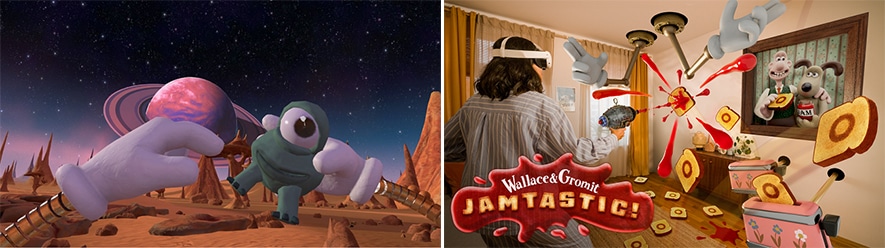The Grand Escape es la primera incursión de Wallace & Gromit en la realidad virtual, pero además, los creadores han revelado recientemente que esta nueva aventura también ofrecerá la primera incursión en el reino de la realidad mixta con Jamtastic!, un caótico mini-juego al estilo galería de tiro que se incluye con la compra de la aventura The Grand Getaway VR en la tienda Meta Quest.