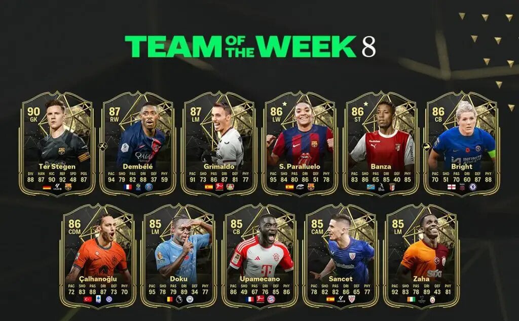 EA ha confirmado los jugadores que conformarán el Equipo de la Semana 8 de EA Sports FC 24 en Ultimate Team. Los siguientes jugadores tendrán estas variantes durante la próxima semana, por lo que tendrás que ser rápido para intentar ganarlas si puedes. Son 18 jugadores en total los que componen el Equipo de la Semana.